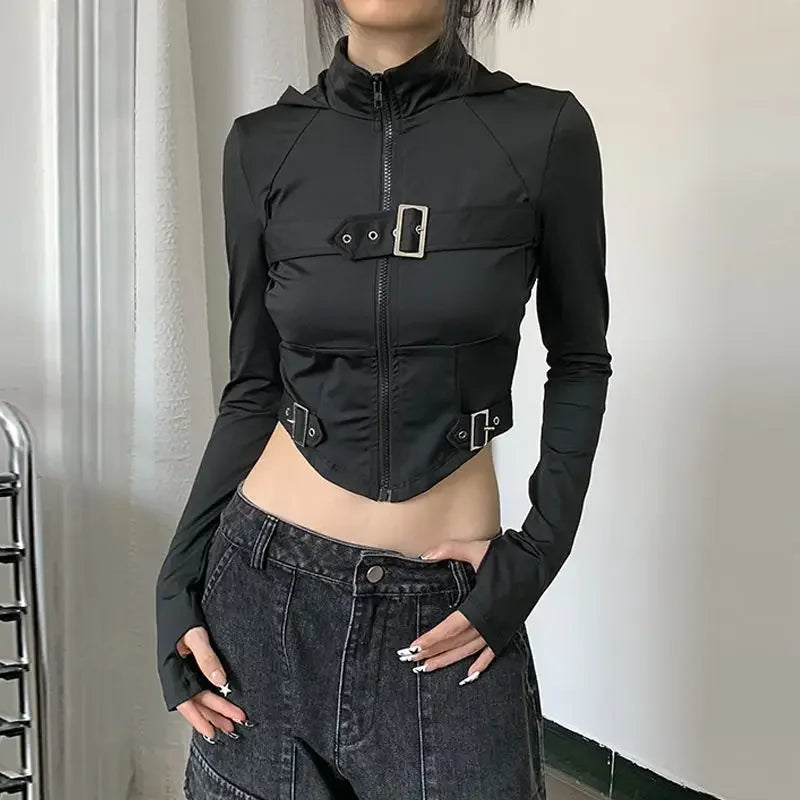 Goth Black Bandage Hollow Out Cyber Y2k Bodysuit