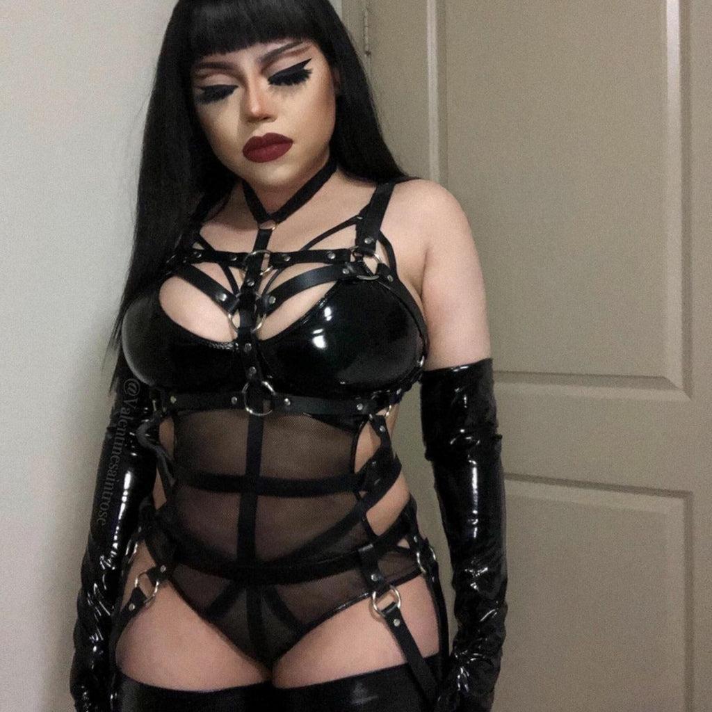 'Stone Cold'' Black PU Leather Bodysuit Set