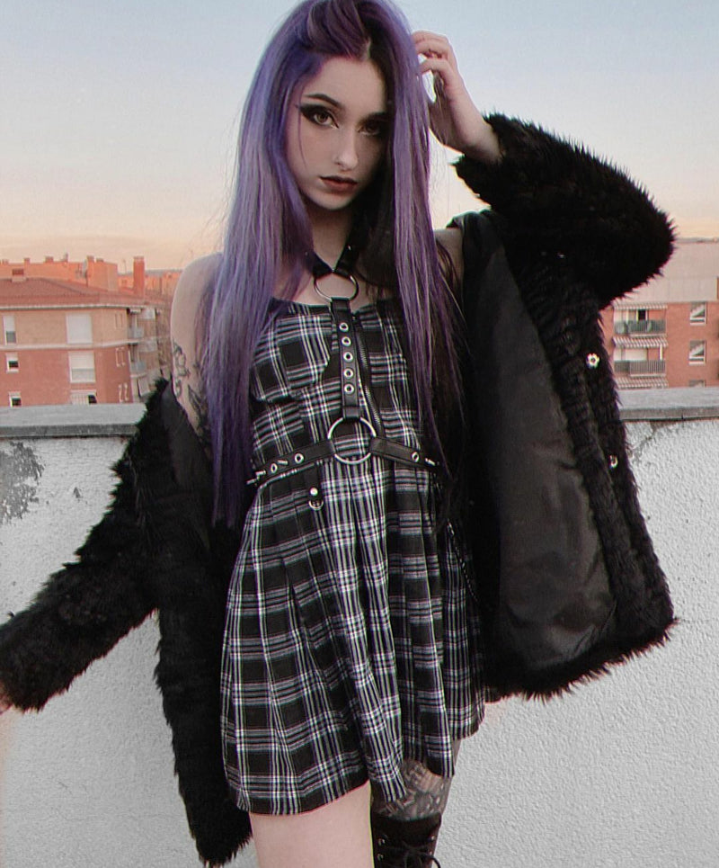 'Fae' Grey Mesh Overlay Strap Grunge Goth Dress