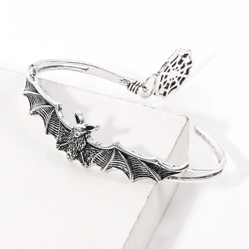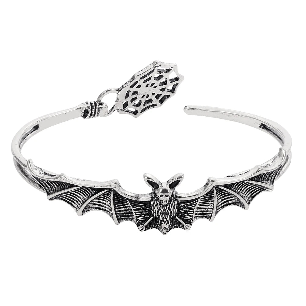 Elevate your edge with the Dark Alt Silver Bat Bracelet. Crafted in darkened silver, it features a bold bat motif that embodies mystery and rebellion. This piece adds a striking, unconventional touch to any outfit, perfect for those who dare to defy the mainstream and embrace their darker side. Durable and distinctly grunge, it’s a statement accessory that speaks volumes without saying a word.