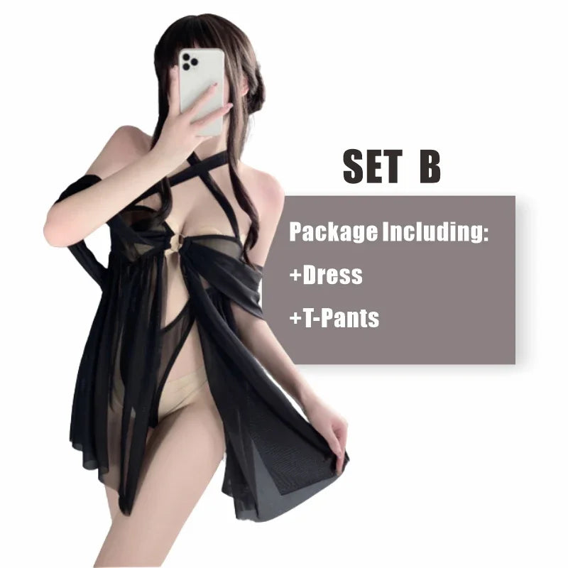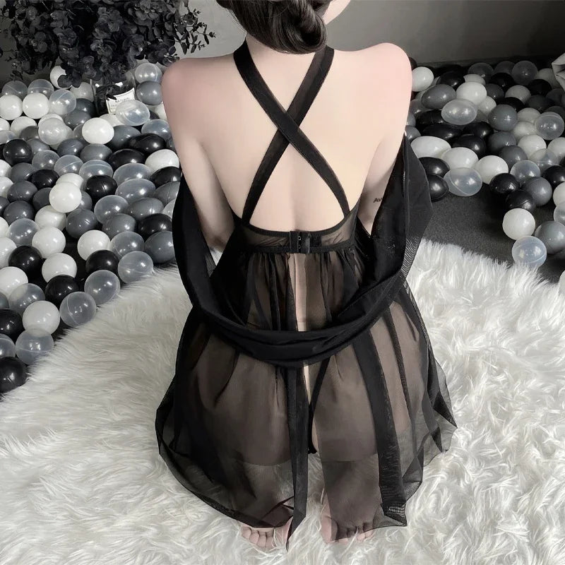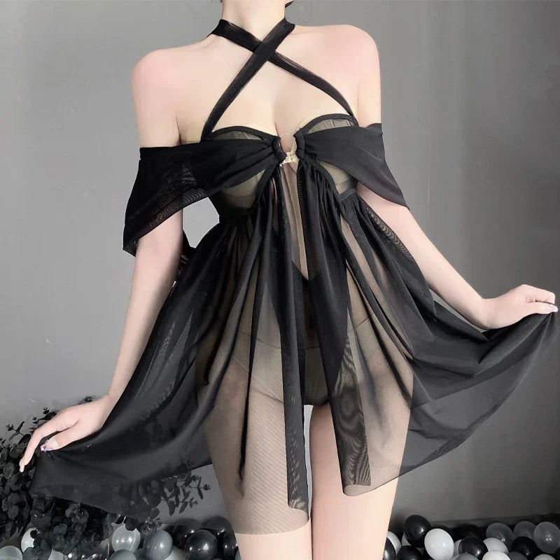 Shredded elegance meets raw sensuality in this black lace halter dress. Delicate see-through panels expose just enough to intrigue, attention. Crafted from intricate lace that drapes like shadows, this piece channels dark, edgy confidence. Perfect for those who refuse to play it safe—wear it as a statement piece over basics or let it stand alone as your ultimate power move. Unapologetically bold, undeniably captivating.