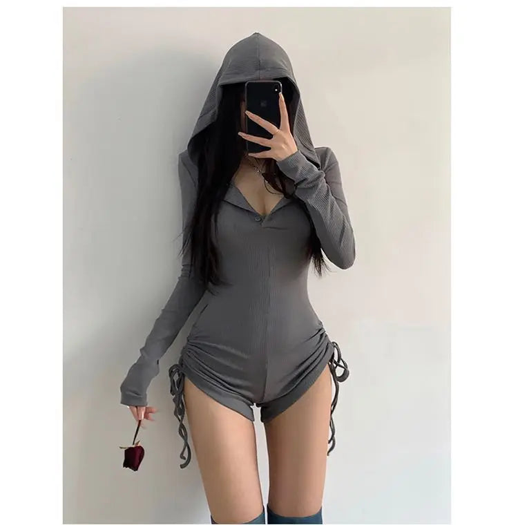 Embrace dark elegance with the Black Lolita Grunge Hooded Jumpsuit. This striking piece blends gothic Lolita charm with edgy grunge style, featuring a comfortable hood and a sleek silhouette. Perfect for those who dare to stand out, it offers a bold, mysterious look that complements your alternative wardrobe effortlessly.