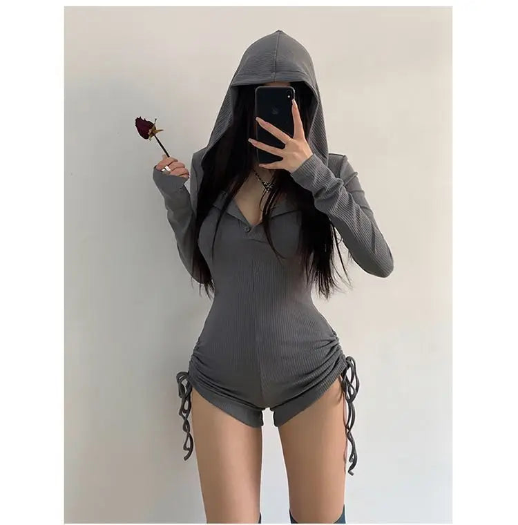 Black Lolita Grunge Hooded Jumpsuit