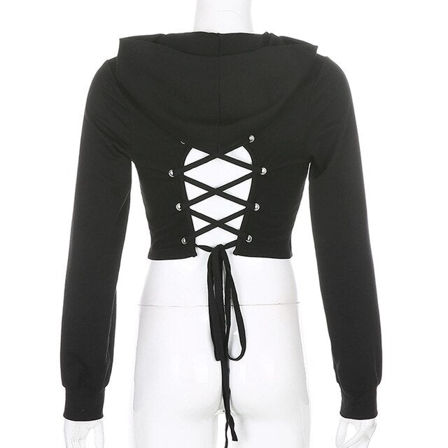 'Ivy' Black Grunge Cat Ear Lace up Hoodie
