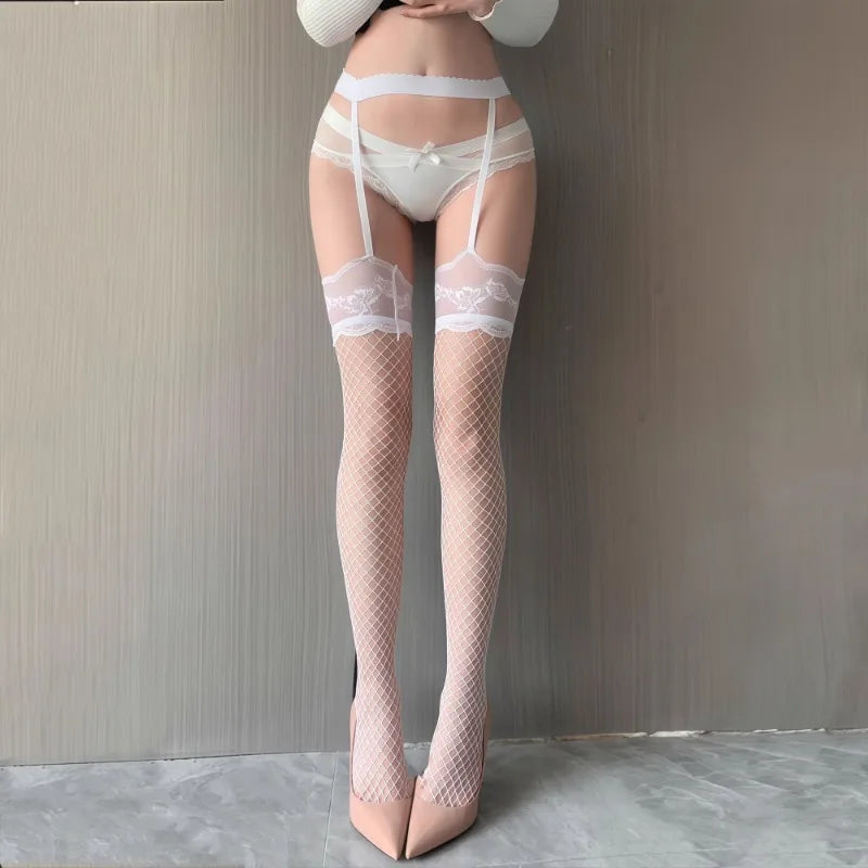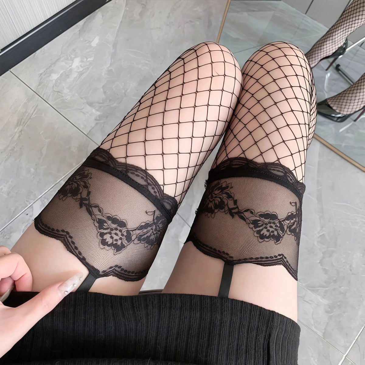 Embrace dark elegance with these Goth Alt Floral Lace Fishnet Stockings. Featuring intricate floral lace patterns woven into classic fishnet, they add a bold, edgy touch to any outfit. Perfect for expressing your alternative style, these stockings combine delicate detail with a rebellious spirit, making them an essential accessory for your gothic wardrobe.