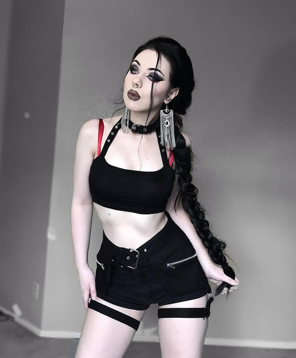 Goth 'Bad to the Bone' Black Goth Buckle Strap Shorts