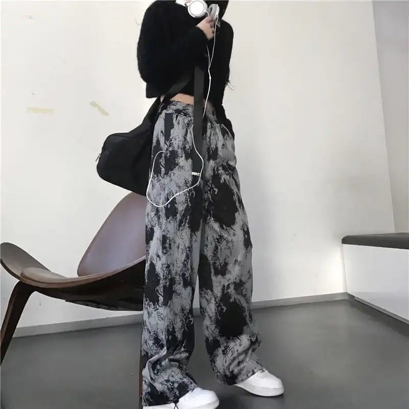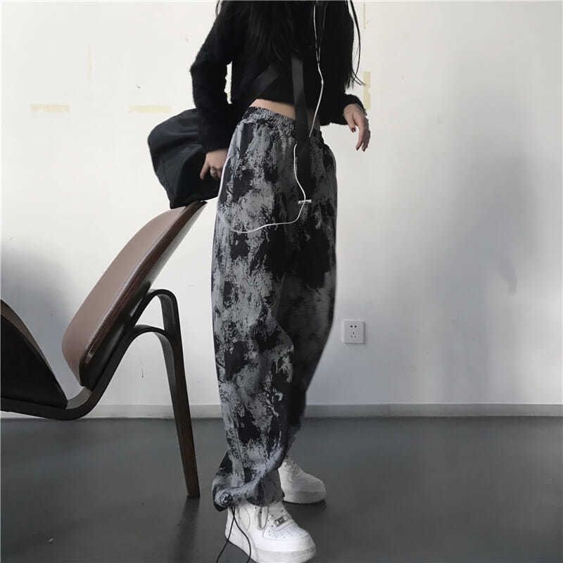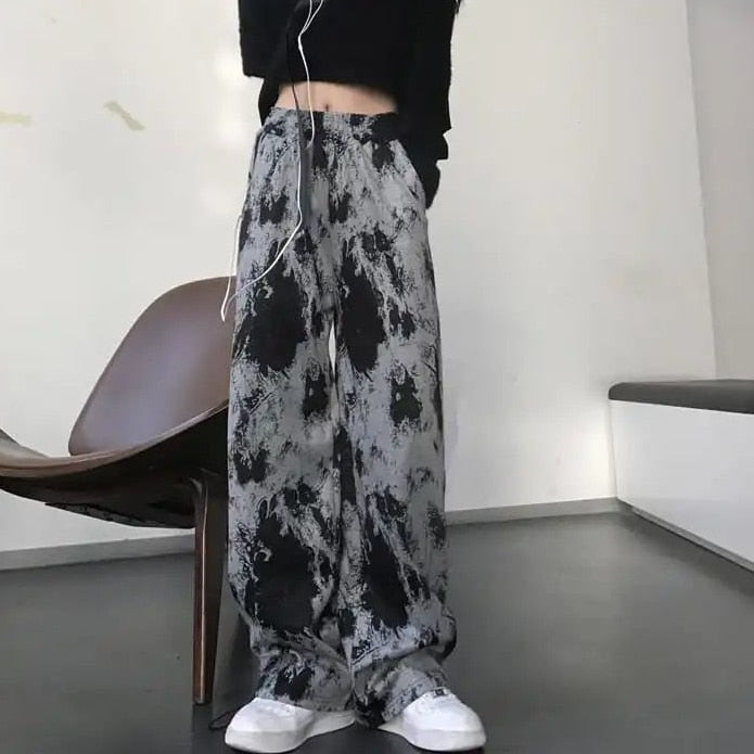 'Charcoal' Black & Grey Baggy Tie Dye Grunge Pants