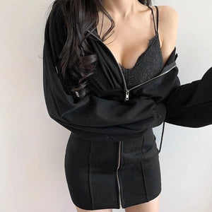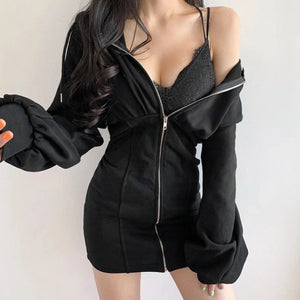'Dangerous' Black Alt Grunge V Neck Hoodie
