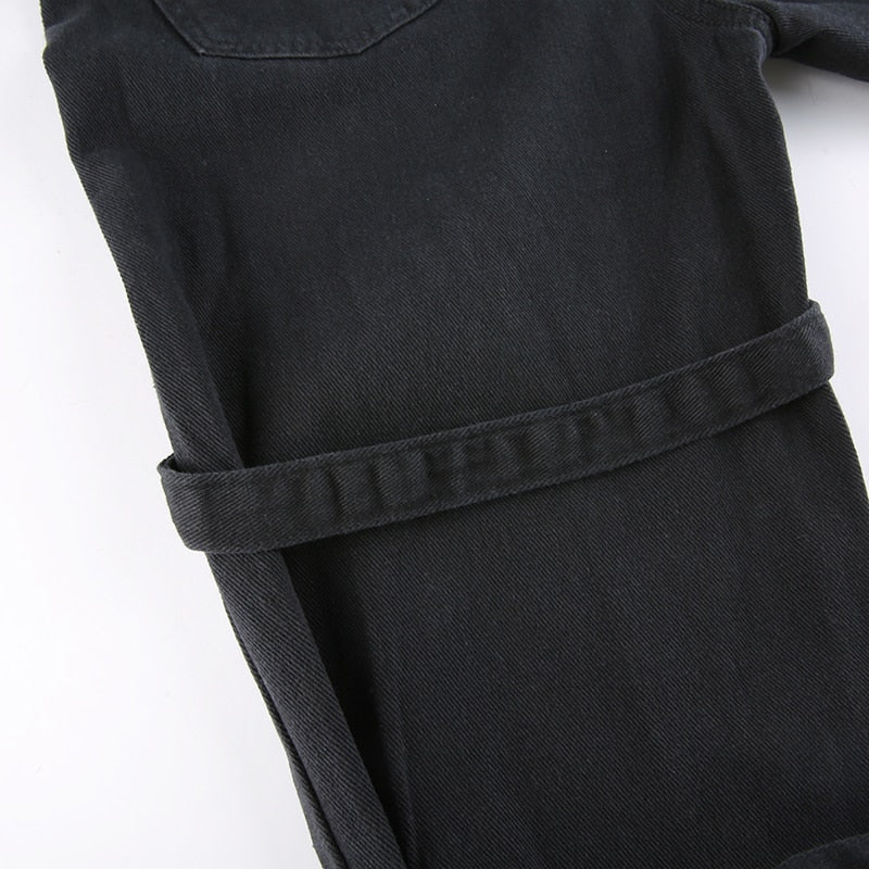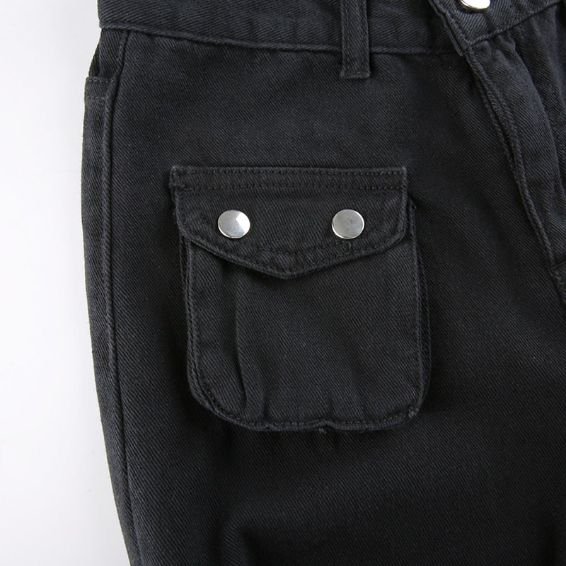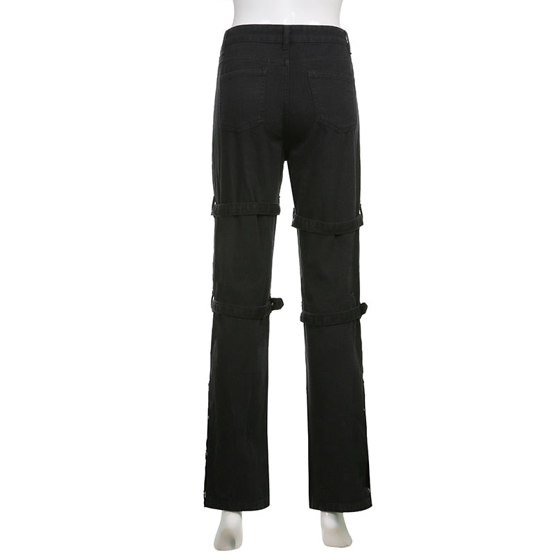 Best Selling Black Baggy Cargo Buckle Pants- Alt Style