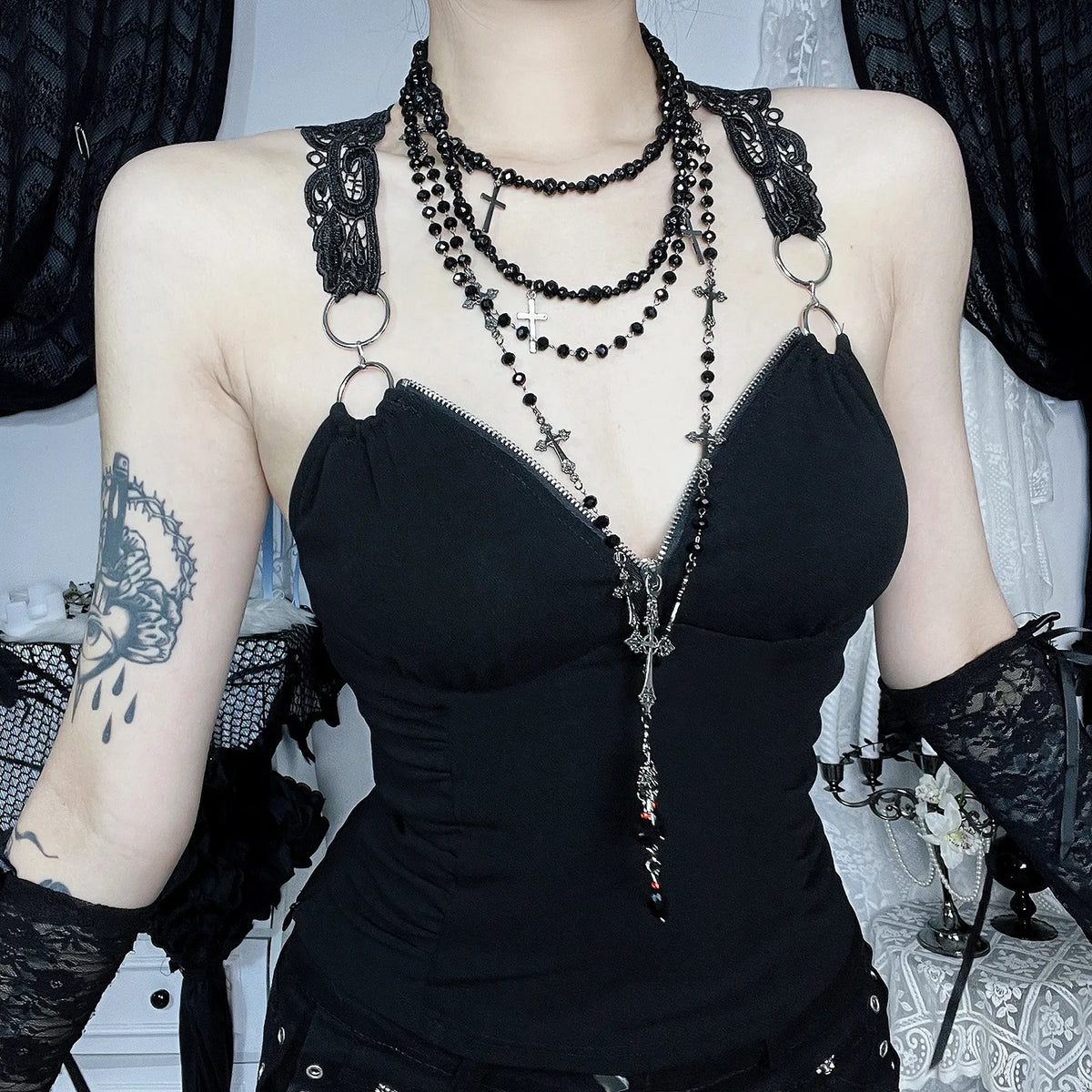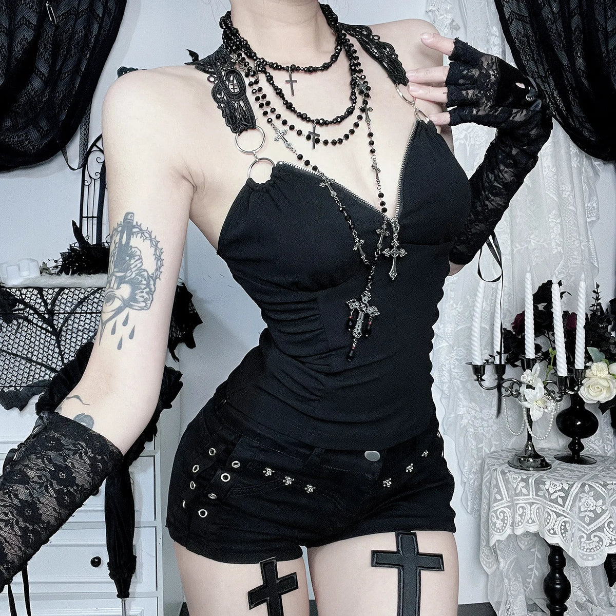 'Enter The Dark' Black Gothic Zip Up V Neck Top