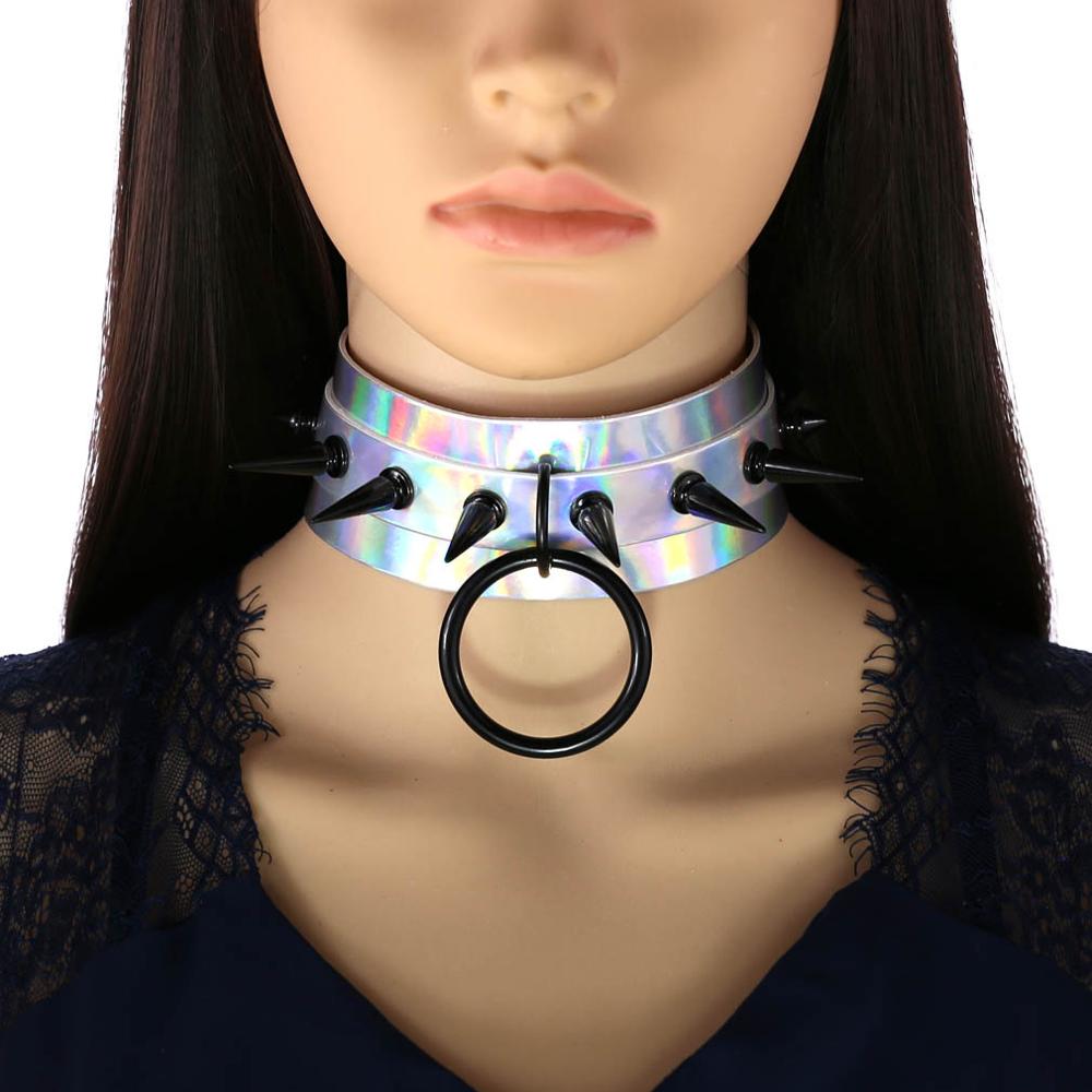 'Hollow Ground' Holographic Black Spike Choker (4 colors)