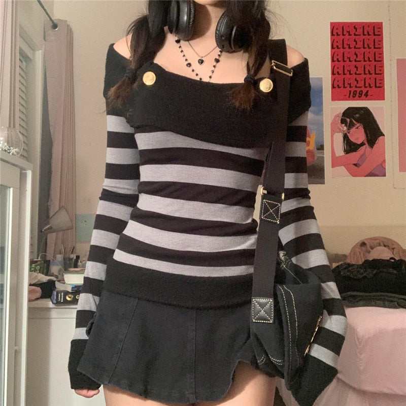 'Hometown' Grey Grunge Striped Long Sleeve Top