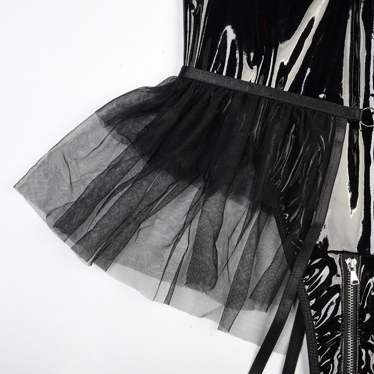 'I Ain't Missing You' Black Mesh Patent Fake Leather Lingerie Bodysuit