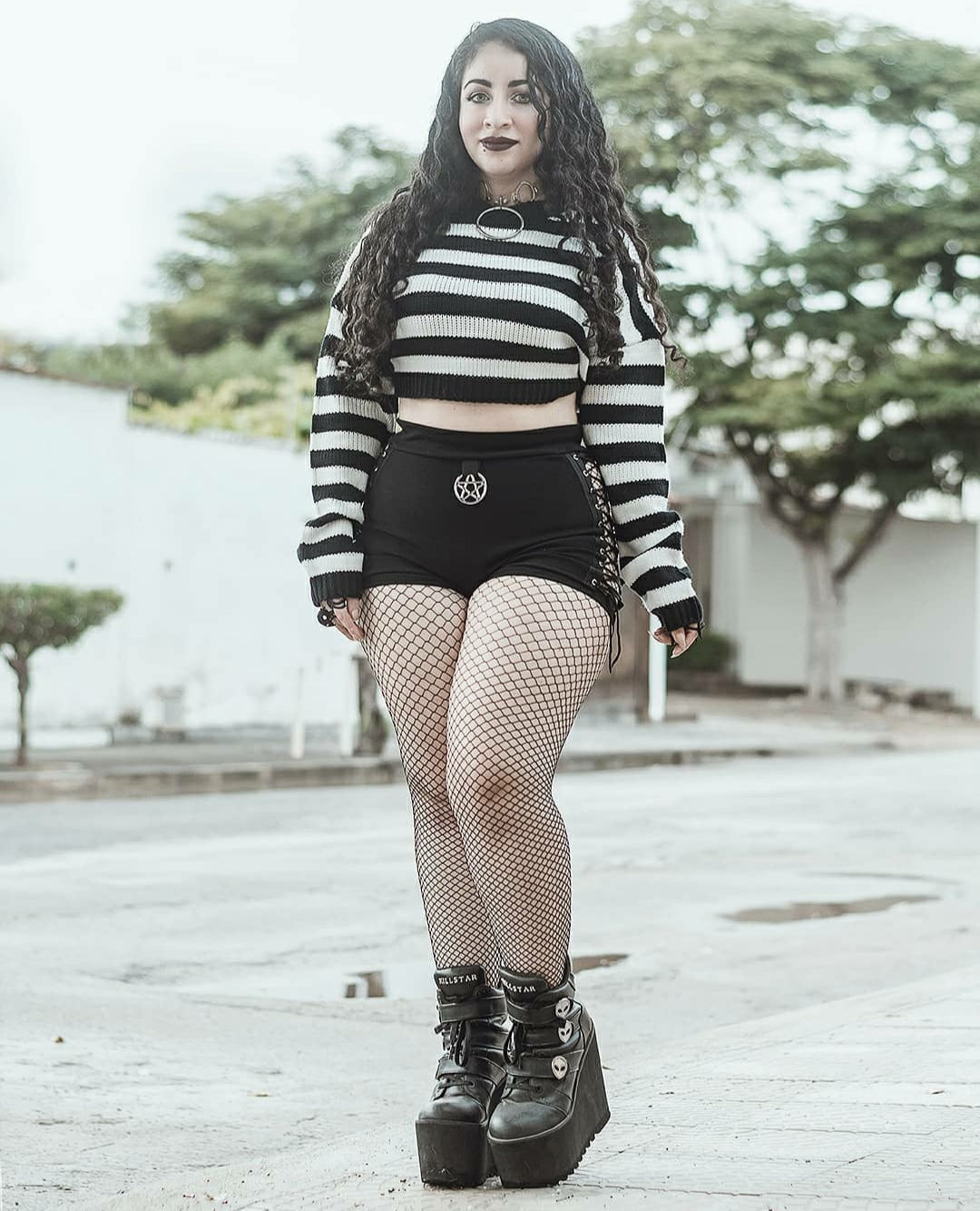 Make a statement with the 'It's Showtime' Black and White Grunge Cropped Sweater. This gothic-inspired sweater is perfect for anyone who wants to add some edginess to their wardrobe. The black and white grunge design is sure to turn heads and the cropped style adds a touch of modernity.