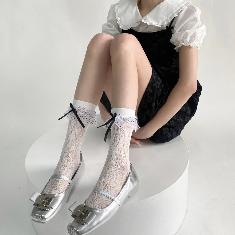 Add a touch of playful charm to your outfit with these Lolita Kawaii Black/White Ruffle Socks. The ruffle detailing adds a fun and feminine touch, perfect for any quirky fashionista. Pair them with your favorite outfit and be ready to turn heads with your unique sense of style!
